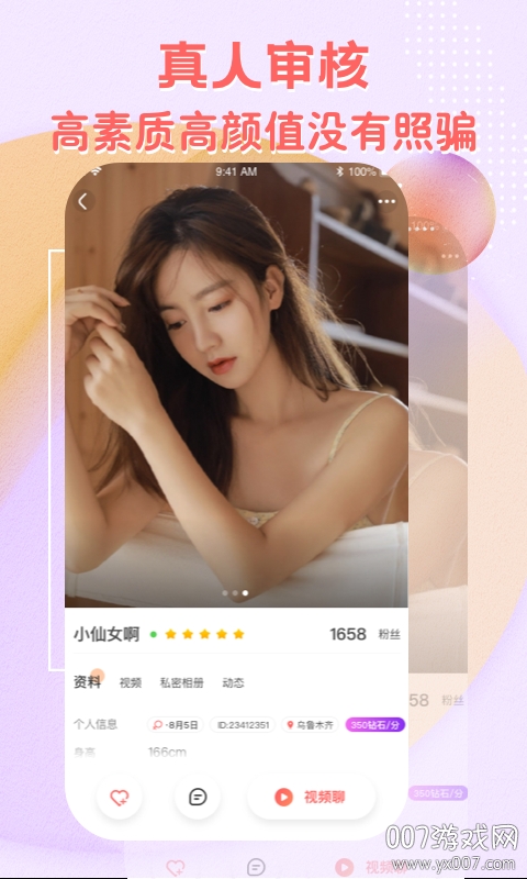 泡椒美女在线聊天是一款专注于高品质视频社交的手机应用,致力于为用户打造真实可靠的线上交友平台。这款软件采用严格的人工审核机制,确保每位注册用户的身份真实性和资料可靠性,杜绝虚假照片和低素质用户,让您能够放心地与心仪对象进行真诚交流。通过一键视频连线功能,您可以随时与喜欢的她面对面畅聊,拉近彼此距离,深入了解对方的性格和兴趣爱好,让情感交流更加自然流畅。