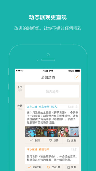 中华教育网、现代教育报、网易教育等权威教育媒体联合推荐!言传app作为家校沟通领域的革新者,以其极简的设计理念和强大的功能配置,重新定义了移动端教育协作方式。春季全新升级的视觉系统,采用清新明快的色彩搭配,带来赏心悦目的使用体验。针对教师群体,我们深度优化了班级管理工具,简化动态发布流程,强化权限管理系统,让教学工作更高效。对于家长关心的校园生活透明度问题,创新设计的动态时间线功能,让您像刷朋友圈一样实时掌握孩子在校动态。新增的智能班级二维码系统,让班级创建与加入流程简化到"一扫即达"的程度,真正实现家校无缝对接。