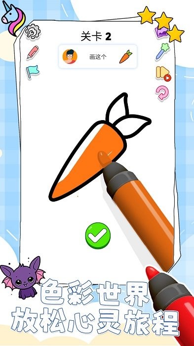 游戏提供了丰富的艺术作品供玩家选择,包括各种动物、食物、自然景观等,每周还会更新主题限时图库。游戏采用直观的操作方式,确保用户能够轻松上手,即使是初次接触数字绘画的新手也能快速掌握。玩家可以通过点击游戏屏幕左侧的画廊图标来访问这些图像,画廊采用智能分类系统方便查找。只需跟随屏幕上的轮廓绘制图像,然后用自己喜欢的颜色填充空白部分,系统会自动识别填色区域防止溢出。游戏内置了舒缓的ASMR音效,帮助玩家在涂色过程中达到放松的效果,还可以自定义背景音乐歌单。