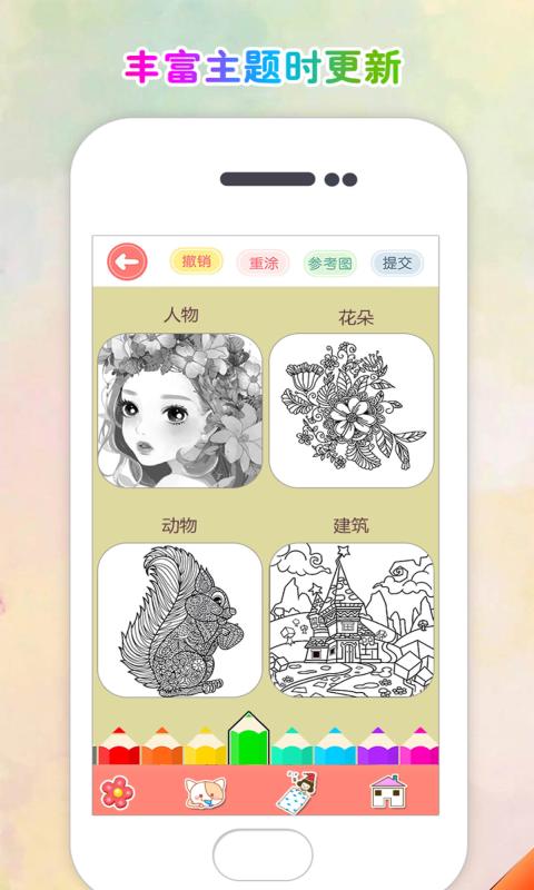 涂色花园游戏提供了数十种不同风格的涂鸦模板供玩家选择,只需轻点画笔,按照线条指引就能完成专业级的色彩创作。游戏操作极其简单直观,通过双击和滑动就能轻松调整画布大小,让你可以精准把控每一个细节。贴心的功能设计包括撤销、重做、保存等实用工具,让你可以反复打磨直到创作出完美的作品。这款游戏不仅是儿童学习色彩认知的绝佳工具,也是成年人释放创意、展现艺术才华的理想平台。游戏还特别设置了家长监控模式,确保儿童能够在安全的环境中享受绘画乐趣。