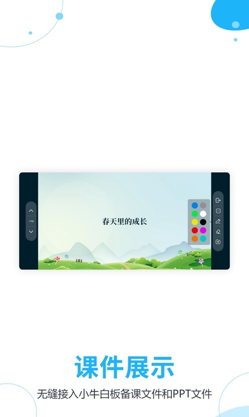 课件展示无缝接入小牛白板软件,支持同时打开多个实时课件并对所选课件中一键同步。智能排版功能可自动调整课件布局,确保最佳展示效果。