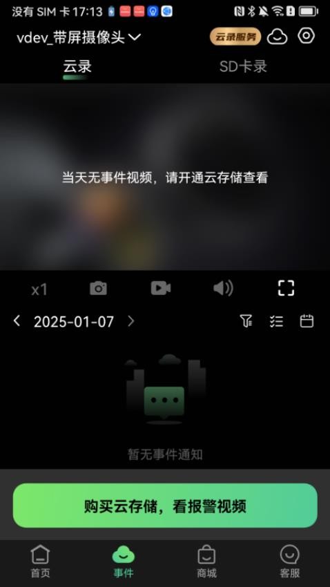 云存储管理界面清晰展示剩余空间和使用情况,续费操作简单快捷。重要录像可单独加密保护或下载保存到本地。客服入口位于每个页面底部,随时可发起咨询。