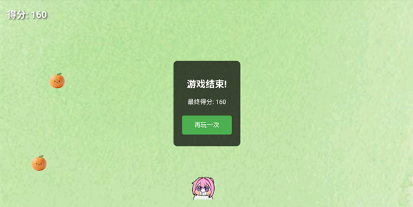 通过滑动屏幕左右移动Doro,接住空中掉落的橘子,同时躲避随机出现的炸弹。游戏采用物理引擎模拟真实的掉落轨迹,让每次接橘子的过程都充满变数和乐趣。每接住一个橘子得10分,连续接住可触发连击加成,最高可达到5倍分数奖励,大大提升了游戏的策略性。触碰炸弹则游戏立即结束,这种紧张刺激的机制让玩家时刻保持警惕。关卡后期橘子与炸弹掉落速度会逐渐加快,不仅考验玩家的反应力与手速,还需要预判掉落轨迹来规划最佳移动路线。