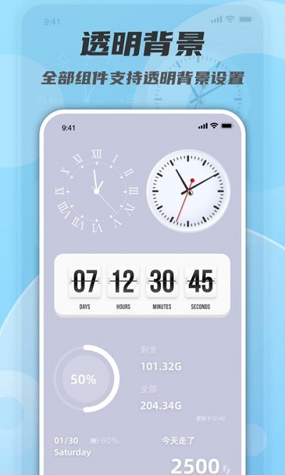 软件采用极简设计理念,界面清爽直观,运行流畅不卡顿,对手机内存的占用极小,即使是配置较低的设备也能完美运行。提供数十种精美的时钟样式和数字字体,还有多种预设模板可供选择,满足不同用户的审美需求。软件功能实用性强,用户体验极佳,让日常使用手机变得更加便捷有趣。您可以充分发挥创意,自由组合各种小组件,打造完全个性化的主屏幕布局。支持包括时钟、日历、天气、存储空间等多种实用功能的小组件,为您的生活和工作带来更多便利。