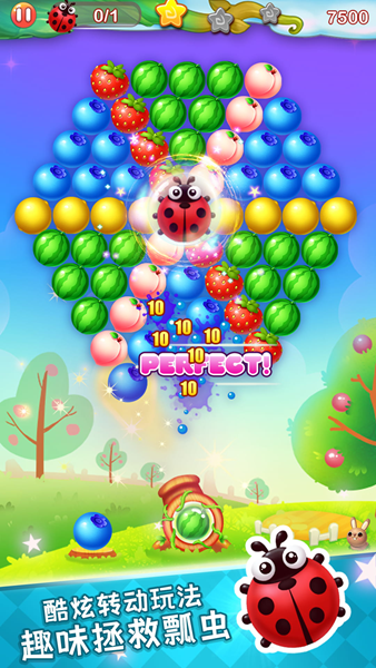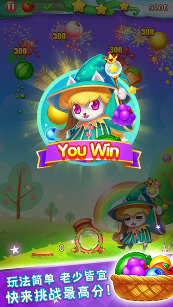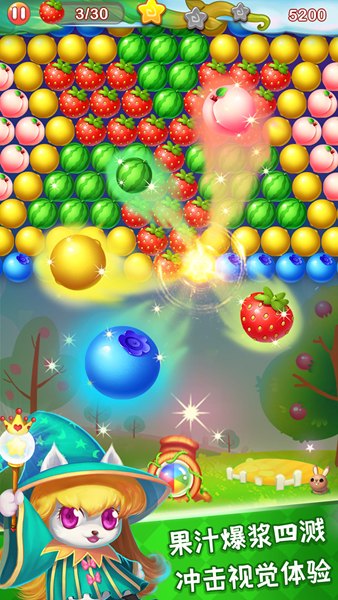 《水果泡泡传奇》是一款画面精美、玩法经典的泡泡龙消除游戏。在色彩缤纷的水果泡泡世界中,玩家将扮演小女巫猫安吉拉,通过精准射击泡泡来解救被困的小猫咪。游戏特别加入了连击奖励机制,连续消除可获得强力道具。每日登录还能参与幸运大转盘活动,赢取丰厚奖励。独特的七星瓢虫收集系统和星光收集任务让游戏内容更加丰富,带给玩家更多探索乐趣。