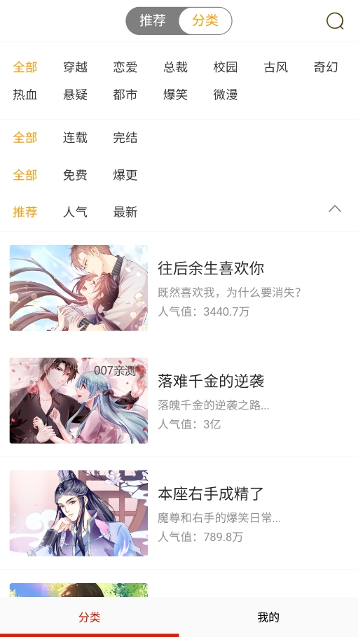 汇聚了全球漫画爱好者,用户可以在社区中交流心得,查看每日热搜榜单了解最新潮流。平台采用智能推荐算法,根据用户的阅读习惯精准推送感兴趣的内容,并在关注作品更新时及时提醒。操作简单易上手,漫画资源丰富多样,随时满足你的阅读需求。提供多种风格的漫画作品,从经典到小众应有尽有,为喜欢探索新作品的用户提供更多惊喜选择。