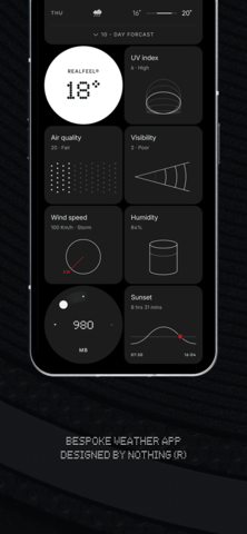 人性化文字描述:告别冰冷的图标与数字,nothing天气用温暖生动的语言描绘每日气象,就像好友间的日常问候。无论是晴天、雨天还是雪天,都能让您感受到不一样的天气魅力。