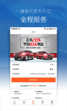 【卖车服务】简化卖车流程,支持在线估价、预约检测、发布信息等操作,保护车主隐私信息,采用竞价模式确保获得合理售价,实现快速成交。