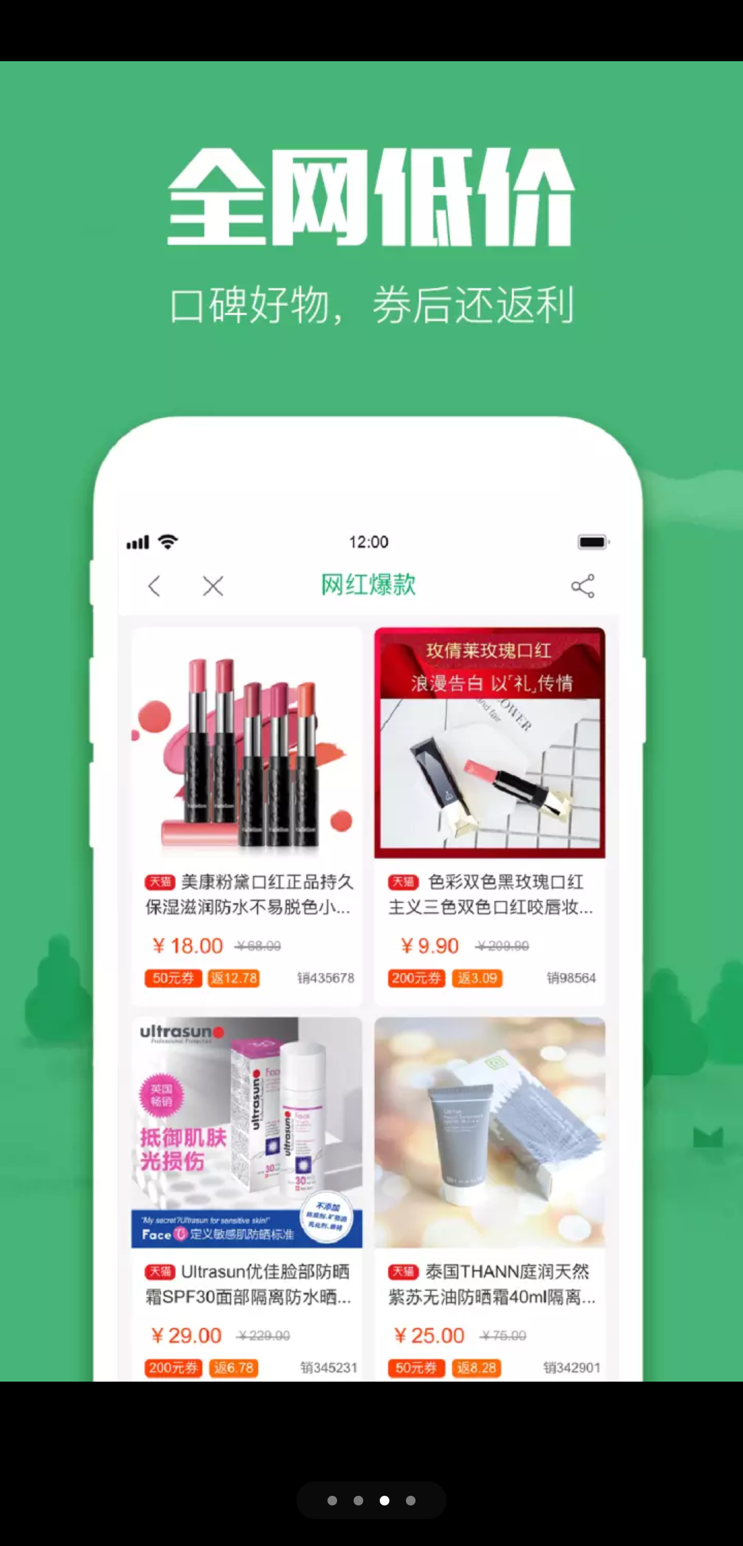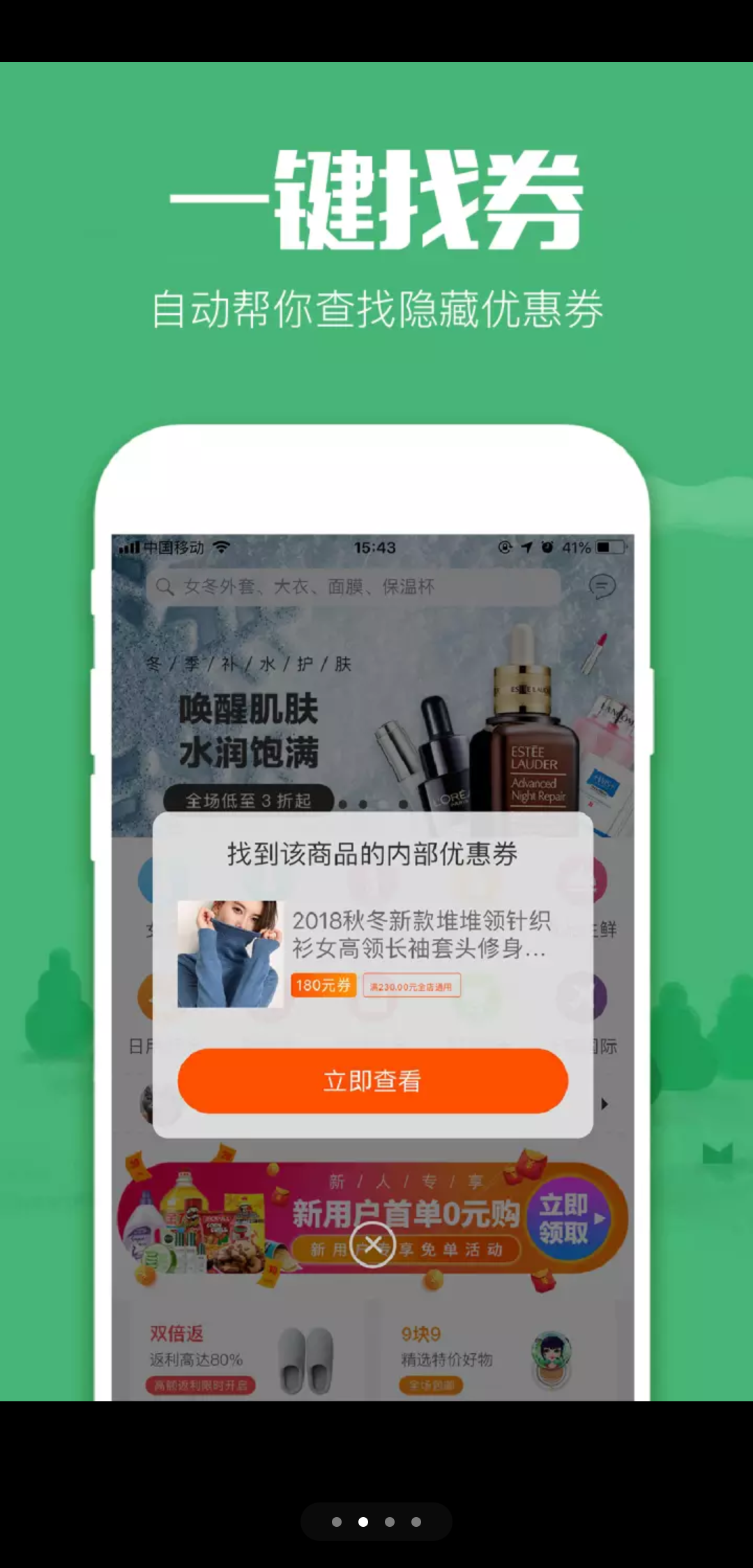 独创的"优惠券+返利"双省模式,让用户享受双重优惠,平均每单可节省30%-70%的购物支出。