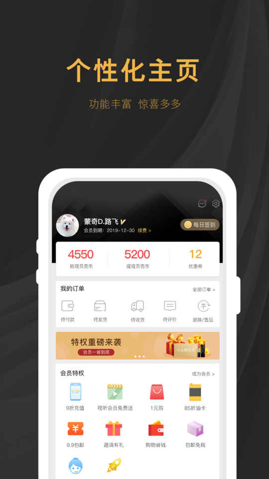 升级会员特权,新增白金会员专属服务,包括专属客服、优先发货等多项权益。