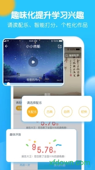 创新的背景音乐功能帮助孩子快速进入朗读状态,专业的评分系统实时反馈朗读效果。孩子们可以通过反复练习不断提高成绩,在获得成就感的同时提升朗读水平。