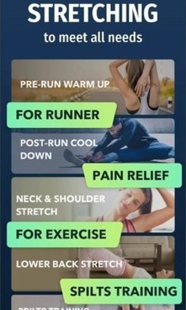 拉伸运动可以更好地放松肌肉,提高韧性,长期坚持还能改善体态和姿势。运动后拉伸可以帮助减轻肌肉酸痛,加速恢复,让身体更快回到最佳状态。大量专业运动健身视频供您查看,随时学习健身技能,这些视频由国家级运动员和专业教练团队精心录制。此外,软件还会根据用户的身体状况智能推荐合适的拉伸方案,真正做到个性化服务。