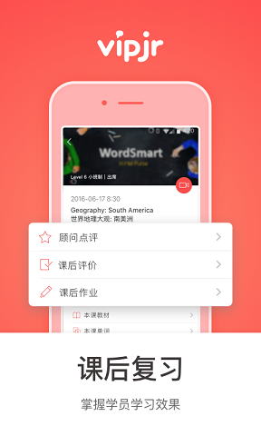 vipjr建立了完善的课后复习体系,每节课后都会提供详细的学习报告和复习资料。系统会自动记录学习进度和知识点掌握情况,帮助学生和家长清晰了解学习效果。通过科学的复习安排,学生可以巩固课堂所学,加深理解,最终达到灵活运用的目标。