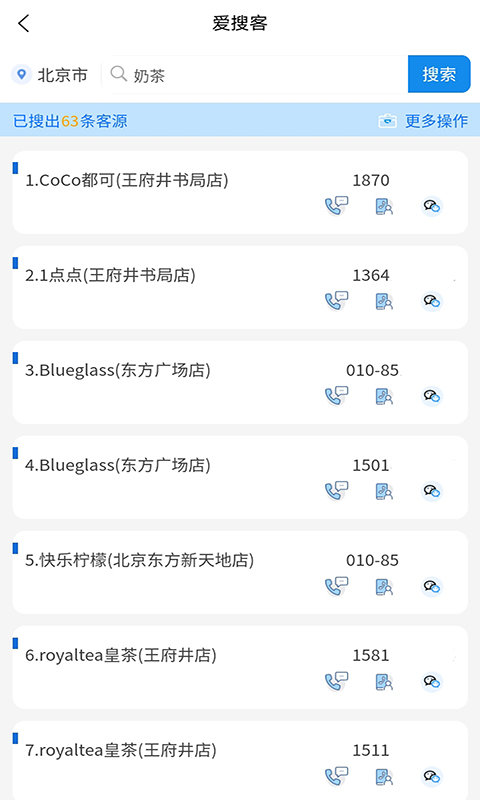 软件里面包含,查号码、找客源、查企业、附近搜索、地图搜索等便捷的功能,操作界面简洁直观;