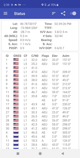 GPSTest能够动态展示设备接收到的卫星详细信息,包括信号强度、卫星编号和定位状态等核心参数。作为一款开源工具,它特别适合需要深度分析GNSS性能的专业场景。软件通过可视化界面直观呈现卫星分布和信号质量,让用户能快速判断GPS/GNSS系统的工作异常是源于硬件限制、环境干扰还是软件配置问题。其独特的诊断功能可追溯定位偏差根源,大幅提升故障排查效率。