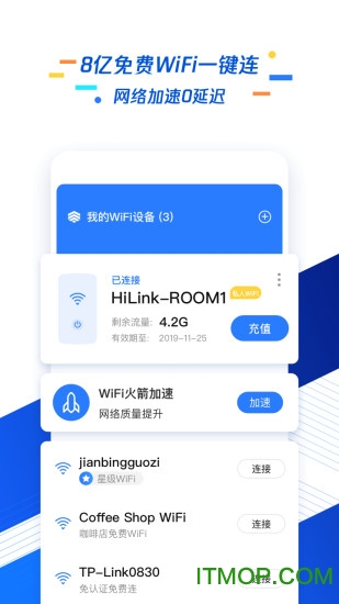 【免费Wi-Fi】依托腾讯庞大的数据库资源,智能筛选全国范围内数百万个优质WiFi热点,提供安全可靠的一键连接服务。通过严格的认证机制确保每个热点都经过安全检测,让您随时随地都能连上高速稳定的WiFi网络。