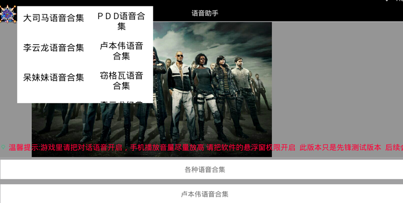 本软件专为手游玩家量身打造,完美适配各类主流手游。使用时只需开启悬浮窗功能,即可随时调用丰富的语音资源。需要注意的是,当前版本为先锋测试版,我们正在持续优化中,期待您的宝贵建议!