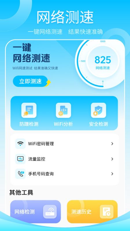 万能wifiapp具备多项实用功能,满足用户在不同场景下的网络需求。当您刷短视频、追剧或玩游戏时遇到网络卡顿,只需一键即可提速,告别延迟困扰。软件内置的流量监控功能,帮助您实时掌握数据使用情况,避免超额消耗。此外,万能wifiapp还能有效防止他人蹭网,通过实时安全检测,确保您的网络环境安全可靠。无论是个人使用还是家庭共享,这款工具都能为您提供贴心的网络保护。