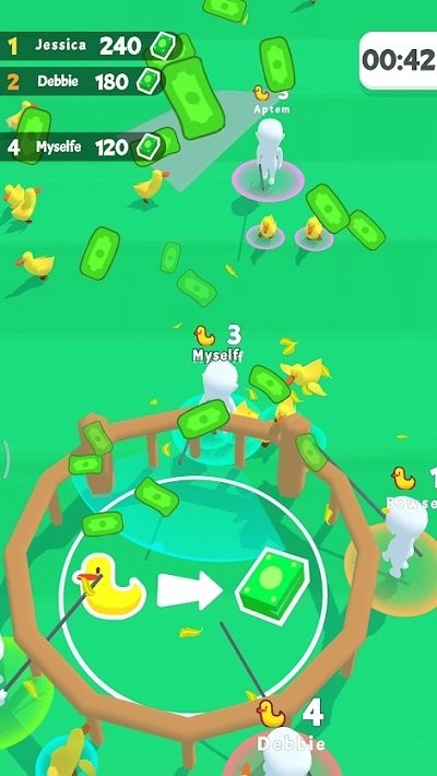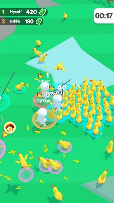 游戏内容丰富多彩,精心设计的关卡和挑战模式让玩家能够乐享不停,沉浸其中。支持多人联机对战功能,玩家可以邀请好友一起比拼捕捉技巧,看看谁才是真正的"抓鸭达人"。游戏采用极简清新的画风,搭配丰富多样的玩法模式,为玩家带来极佳的游戏体验。