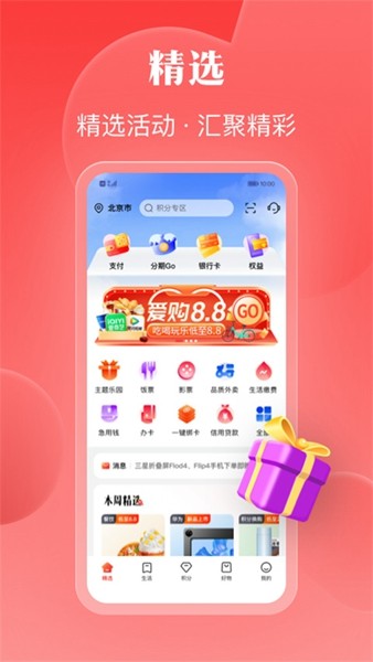 软件特别注重积分价值,让用户的每一分积分都能发挥最大效用。"积分当钱花"的特色功能让积分可以直接抵扣消费金额,而"权益随心查"则让用户对各项优惠一目了然。精心设计的"精选"、"生活"、"积分"、"好物"、"我的"五大频道,覆盖了用户日常生活的方方面面,让美好生活触手可及。