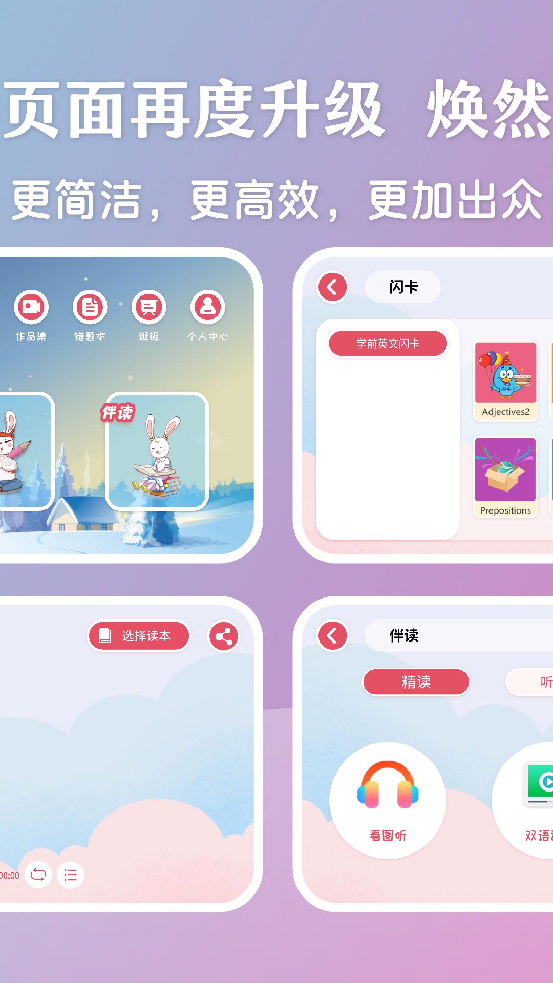 【独立阅读】功能实现了线下教材的同步点读,学生可以随时复习课堂内容,配套的智能练习题能即时检测学习效果。【磨耳朵】训练采用科学的听力输入方法,通过"只听不看"和"只听不说"两种模式,帮助孩子建立纯正的英语语感。【绘本伴读】功能打破了传统英语阅读的枯燥模式,提供精读、泛读、跟读、作品展示等多种互动方式,让阅读变得生动有趣。【电子学典】则是一个强大的学习辅助工具,包含同步练习题库、重点知识标记、自主组卷和错题本等功能,帮助学生有针对性地强化薄弱环节。