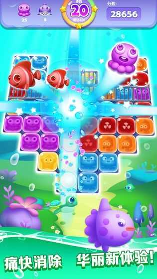 精致漂亮的画面给玩家以自己的视角带来最新的享受,特效非常刺激;游戏采用3D渲染技术打造海底世界,各种海洋生物栩栩如生,消除特效绚丽多彩。每个关卡都有独特的背景设计,让玩家仿佛置身于梦幻的海底世界。