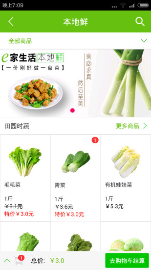 家居美食好帮手,您口袋中的菜篮子,e家生活,让您随时随地都能购买到新鲜食材,为家人烹制美味佳肴。