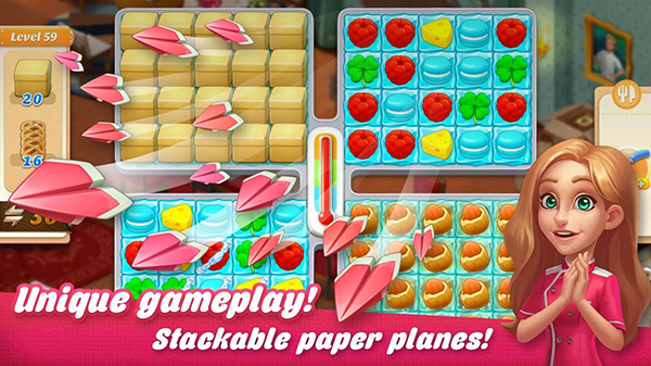 在《餐厅复兴》中,玩家需要通过经典的消除玩法来获取经营餐厅所需的各类资源。通过滑动屏幕交换相邻图块,当三个或更多相同图块连成一线时即可消除。特别的是,当四个相同图块组成正方形时,会产生特殊的纸平面道具;而消除五个或更多图块时,则会生成威力巨大的炸弹道具。随着游戏深入,玩家还能收集能量创造彩虹道具,这些强大的组合将成为攻克难关的关键。每次成功消除都能为餐厅经营积累宝贵资源。