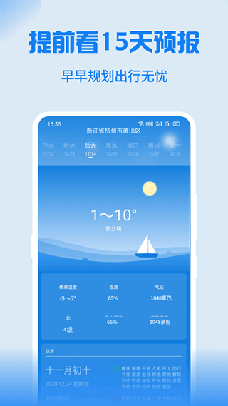 未来几天天气预报功能数据详实可靠,包括温度范围、降水概率、风力等级等关键信息。用户可以根据这些预报合理安排穿衣、出行和户外活动,避免天气突变带来的不便。
