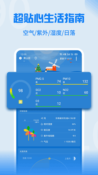 软件中隐藏着许多令人惊喜的小细节,比如随风转动的风车、夜晚闪烁的星空、飘动的云朵等。这些精心设计的元素不仅增加了趣味性,也让天气查看变得更加生动形象,充分体现了开发者的用心。