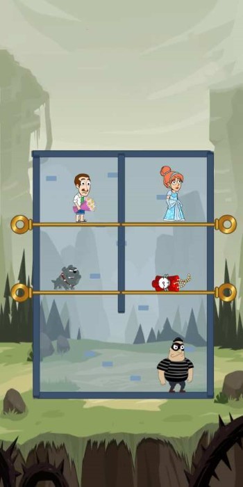 拯救爱情魔性插销是一款充满趣味性的解谜游戏,采用明亮活泼的卡通风格设计。在游戏中,玩家需要仔细观察场景布局,通过精准移动插销来为恋人开辟安全通道。游戏操作直观简单,只需轻触屏幕即可完成动作,但关卡设计巧妙多变,需要玩家开动脑筋才能避开各种陷阱。简洁清爽的界面设计让玩家能专注于解谜过程,而魔性十足的玩法更是让人欲罢不能。