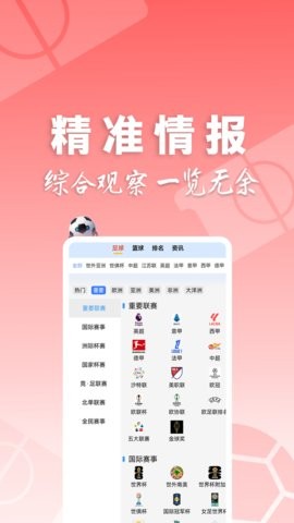 赛事类型:支持多种体育项目分类浏览,您可以根据个人喜好选择足球、篮球等不同项目,轻松获取相关赛事情报。