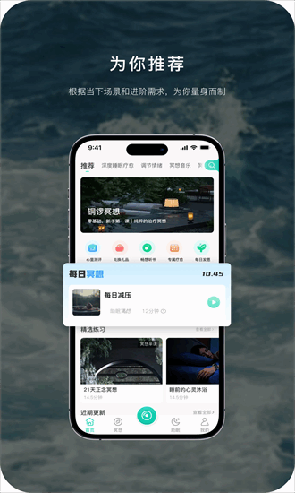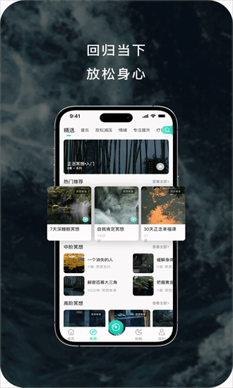 流静冥想是一款专注于提升用户身心健康的专业冥想应用软件,致力于为用户打造一个便捷、高效的冥想练习平台。无论是初学者还是资深冥想爱好者,都能在这里找到适合自己的冥想方式。软件提供多样化的冥想课程和引导内容,涵盖正念冥想、呼吸训练、睡眠改善等多个领域,帮助用户在繁忙的日常生活中找到内心的平静与平衡。通过科学设计的冥想练习,用户可以显著改善睡眠质量、缓解焦虑情绪、提升专注力,从而获得更加健康、积极的生活状态。