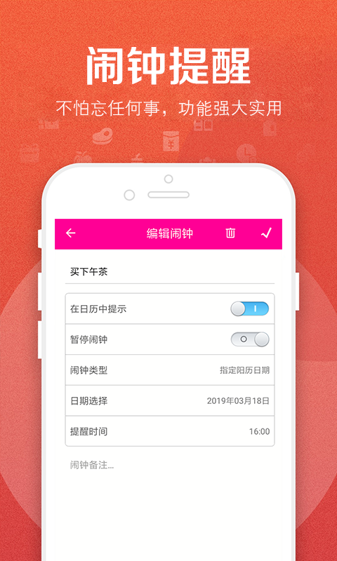 bett笔记在同类产品中具有显著优势。其生活笔记功能让日记、笔记等内容简洁展示,一目了然,帮助您保持生活井然有序;工作记录功能配合提醒设置,确保您不会遗忘重要日程;闹钟提醒功能支持编辑强力提醒,可指定类型日期,灵活设置提醒时间;日历记功能让您能够记录美好时光,随时随地查看过往笔记,重温珍贵回忆。这些优势使bett笔记成为您生活中不可或缺的得力助手。