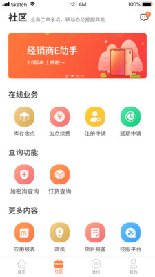 经销商E助手的首页设计简洁明了,包含了延期申请、加密狗管理、订货查询、新增商户、新增代理商等核心功能入口。整个界面布局经过精心设计,功能分区合理,操作流程直观,即使是初次使用的用户也能快速上手。经销商可以随时在线办理各类业务,包括库存余点查询、加点续费操作等,大大提升了工作效率。支付页面还集成了数据中心、资质档案和用户管理等实用功能,为经销商提供全方位的业务支持。