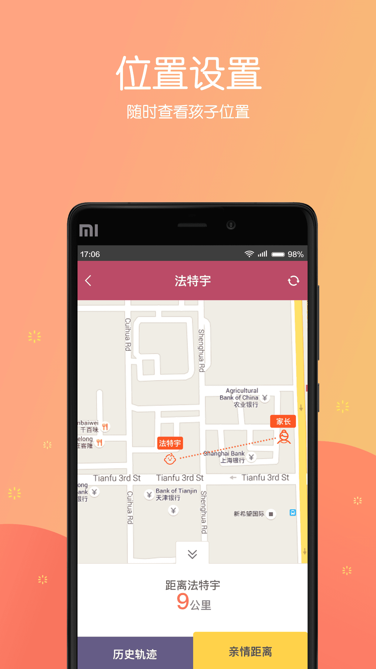 实时位置关注:基于高精度定位技术,可实时查看孩子位置历史轨迹。新增电子围栏功能,当孩子到达或离开预设区域时,家长会立即收到推送提醒。