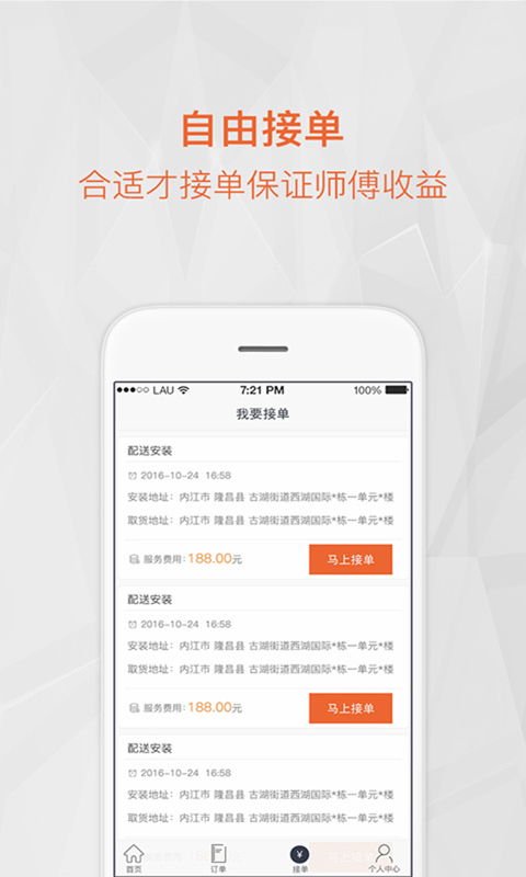 自由接单合适才接单保证师傅收益,智能筛选高价值订单,最大化收益
