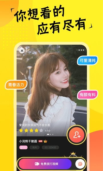 心语视频是心语聊天软件的核心功能之一,提供真人一对一视频聊天服务。平台汇聚了海量优质主播资源,包括高颜值网红、实力唱将、清新文艺青年等各类风格达人,总有一款适合你的审美偏好。在这里,你可以随时发起视频通话,与心仪的对象面对面交流,感受最真实的互动体验。每一次邂逅都可能成为难忘的回忆,让心语视频为你打开社交新世界,创造更多精彩瞬间。