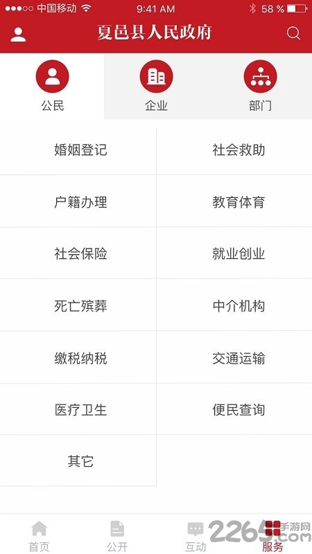 夏邑县政府官方版是一款专为夏邑县居民打造的综合性政务服务平台,由夏邑县人民政府官方授权发布,旨在为市民提供高效便捷的线上政务服务。这款应用集成了婚姻登记、社会救助、户籍办理、教育体育、社会保险、就业创业、死亡殡葬、中介机构、缴税纳税、交通运输、医疗卫生、便民查询等数十项实用功能,真正实现了"让数据多跑路,让群众少跑腿"的服务理念。无论是日常生活中的小事,还是重要业务的办理,用户都能通过这款应用轻松完成,大大节省了时间和精力。目前该应用已在2265安卓网等平台上线,欢迎广大市民下载体验。