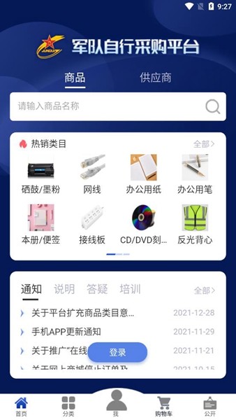 平台提供批量管理功能,支持一键下单、在线支付和配送跟踪,简化采购流程。针对军队特殊需求,平台特别设置了军用物资专区,涵盖训练装备、生活物资等多个类别,满足部队多样化采购需求。