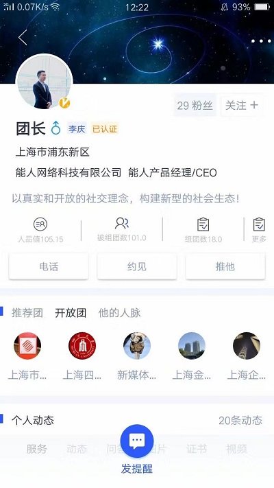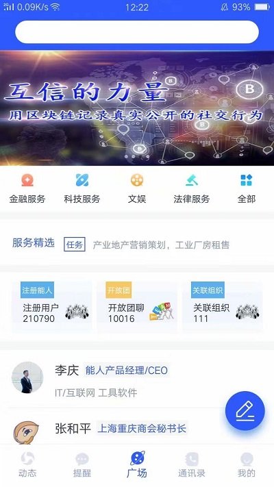 能人app是一款专注于商务社交领域的创新性手机应用软件。作为共享经济时代服务业智能交互平台,它致力于为用户打造一个高效、专业的社交环境,帮助您轻松拓展人脉资源、发掘商业机会。无论您是职场精英、创业者还是自由职业者,都能在这里找到适合自己的发展空间。