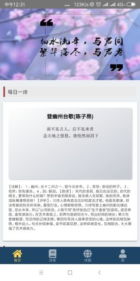 诗词宝典手机版是一款专注于中华传统诗词文化的学习交流平台,集诗词鉴赏、创作分享、互动交流于一体。软件收录了从先秦到明清的经典诗词作品,包括全唐诗、全宋词等权威典籍,为用户打造了一个沉浸式的诗词学习环境。在这里,您不仅能欣赏到历代名家的传世佳作,还能通过社区功能结识志同道合的诗友,共同探讨诗词之美。无论是学生、教师还是诗词爱好者,都能在这款应用中收获知识与乐趣,感受中华文化的博大精深。