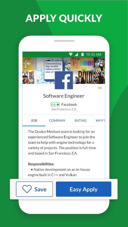 便捷申请流程:通过"轻松申请"功能快速投递简历,简化求职流程。