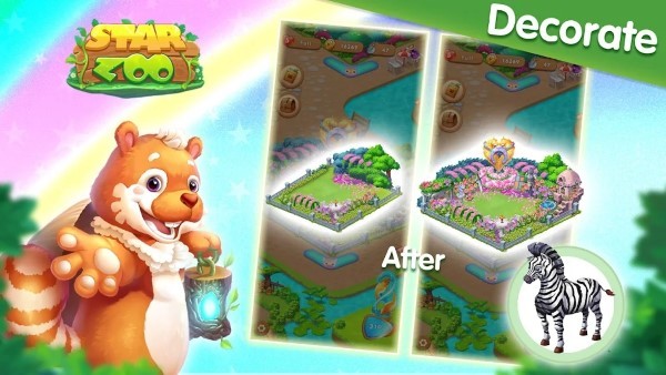 公园装饰:充分发挥你的创意,自由装饰动物园的每个角落。从道路铺设到景观布置,从建筑风格到色彩搭配,打造独一无二的星空主题动物园。