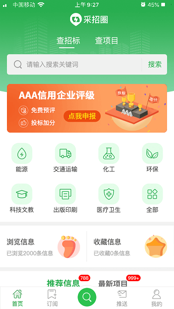 采招圈极速版APP作为国信创新旗下重点打造的移动服务平台,具有多项独特优势:首先,平台采用智能推荐算法,能够根据用户历史浏览记录和偏好,主动推送匹配度高的项目信息;其次,创新的"让项目找到你"服务模式,大大降低了企业寻找合适项目的难度;此外,APP还提供项目搜索、订阅推送、行业风向标、专业采招咨询等多项实用功能,全方位满足用户需求。