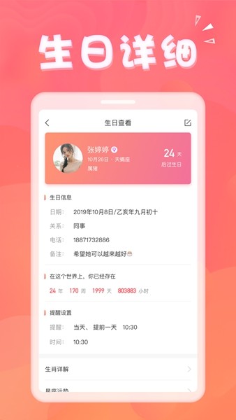 智能祝福功能:支持预约短信祝福,可在生日当天自动发送温馨问候,让心意准时送达。