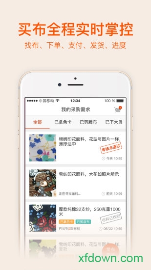 全新UI设计:首页采用卡片式布局,操作更直观。新增个性化推荐模块,根据采购习惯智能推送相关面料。