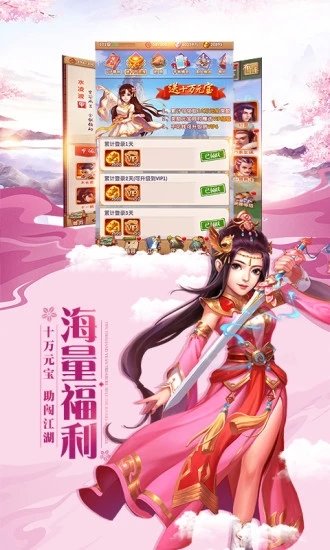 为了让每位掌门都能快速融入江湖,游戏准备了海量登录福利。每日签到即可获得各种珍稀道具,连续登录更有极品侠客相赠。行走江湖怎能囊中羞涩?游戏内设有完善的福利系统,元宝、银两、装备材料等资源送不停,确保每位玩家都能享受到公平愉快的游戏体验。无论你是休闲玩家还是硬核武侠迷,都能在这里找到属于自己的江湖位置。《大掌门2》诚邀各位武林同道,共同谱写新的武林传奇。