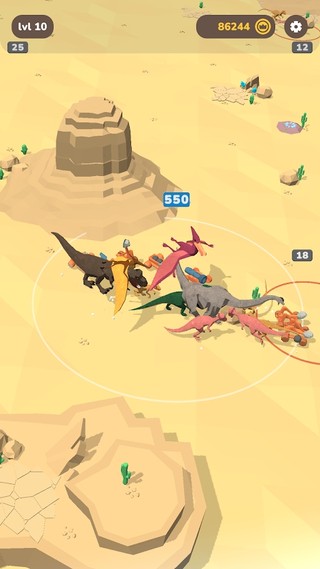游戏的核心玩法是合并相同的恐龙来创造更强大的新品种。通过巧妙的匹配和组合,你可以解锁超过50种不同的史前巨兽,包括凶猛的霸王龙、翱翔的翼龙和坚固的三角龙等。每次合并都会带来惊喜,看着你的恐龙不断进化成长,最终成为所向披靡的战斗机器。