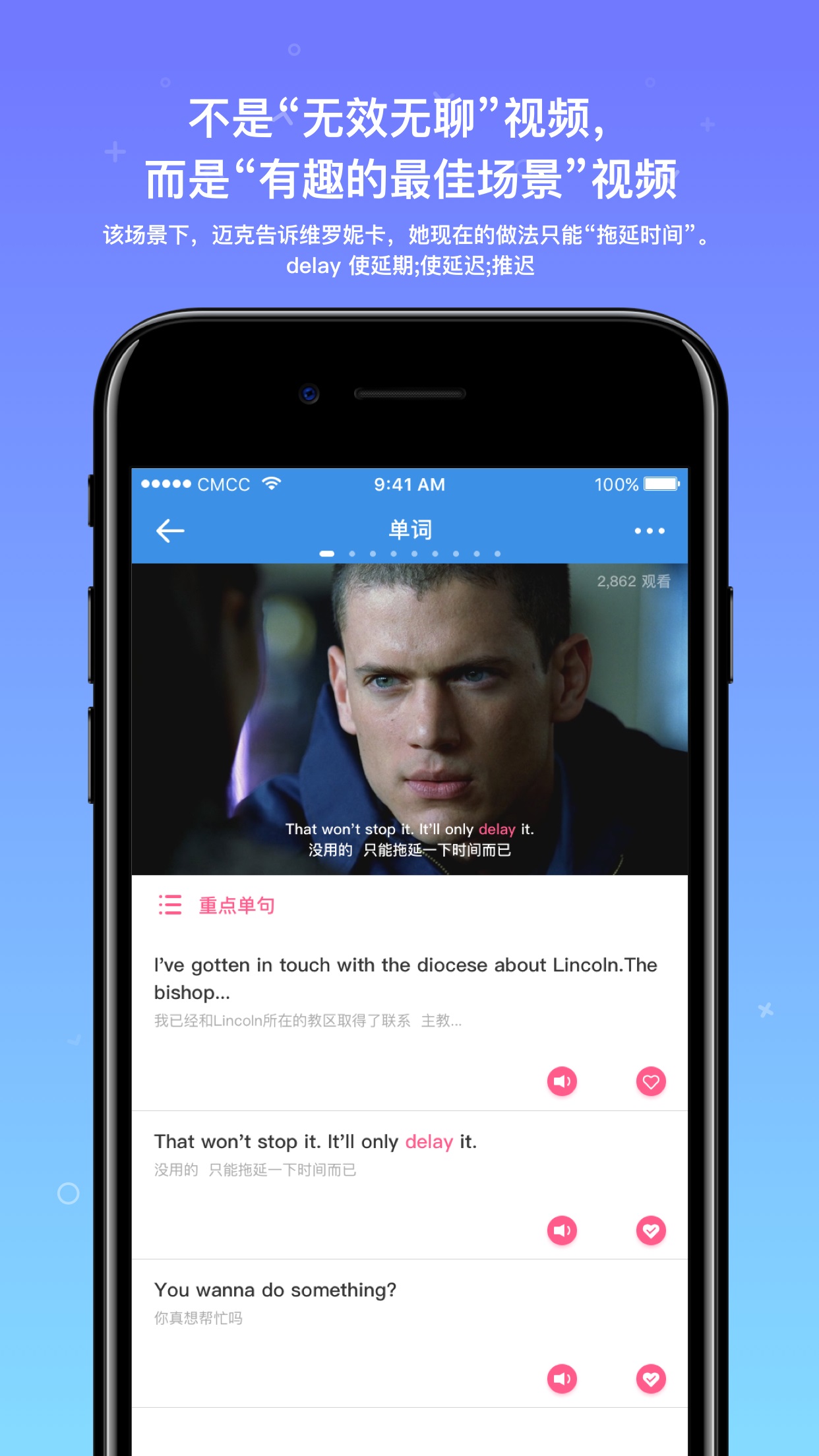 然后,大家在每个单词学习页中,通过观看强有关联场景的视频,而且是"有趣"的场景视频后,即可明白在该场景下使用该单词的原因和意义。这些视频素材选自热门影视剧、纪录片和日常生活场景,平均时长控制在30秒内,既保证学习效果又不会造成视觉疲劳。视频内容经过教育专家精心挑选,确保每个场景都能生动展现单词的典型用法。